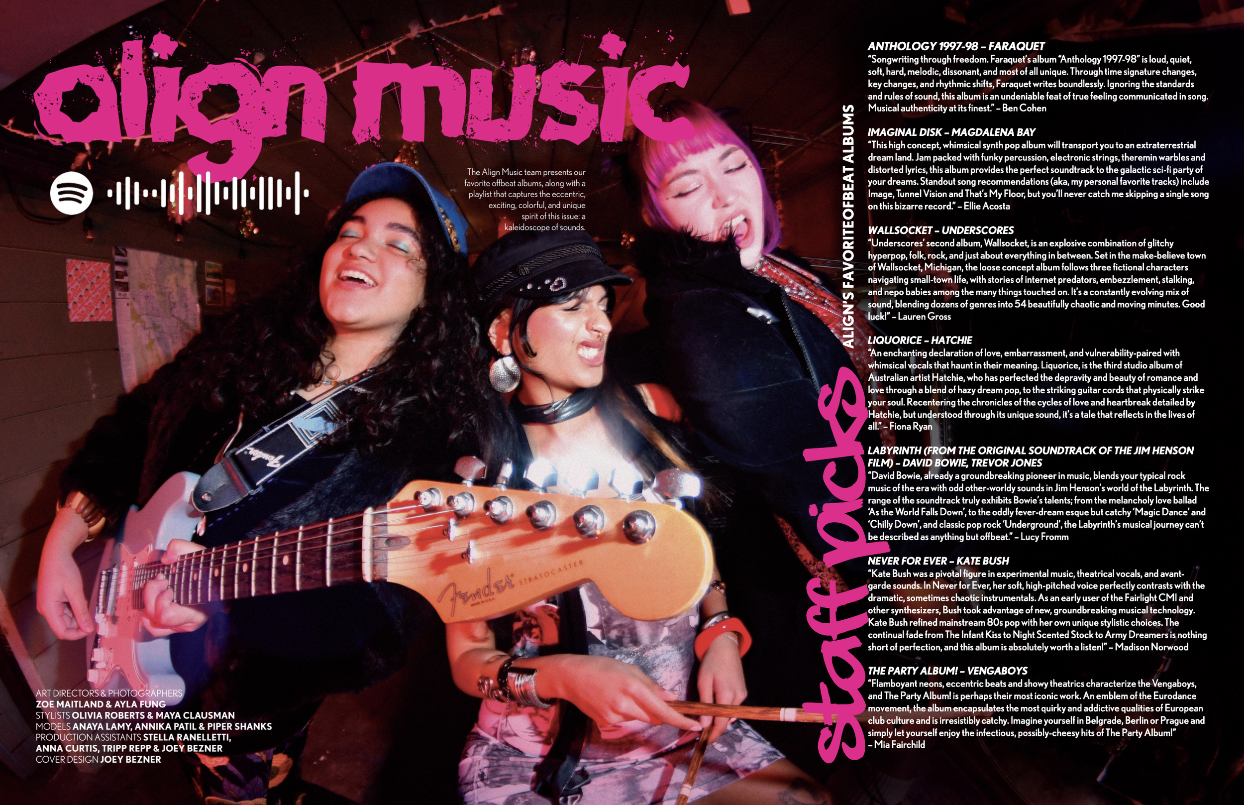 Align is a fashion, art, and culture magazine, at the University of Oregon, fostering a creative community where students connect, collaborate, and share their work across various mediums. We create and publish three issues per academic year, consistent blog posts, playlists, and developing mediums like video and audio.